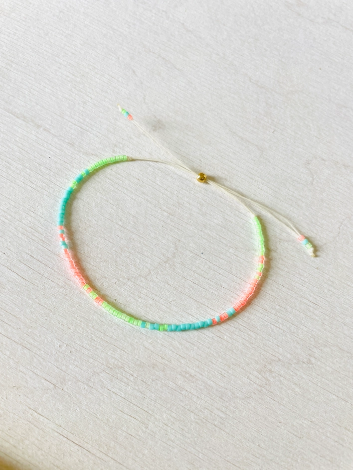 Bracelet Réglable Perle Miyuki Atelline | Turquoise Vert Corail